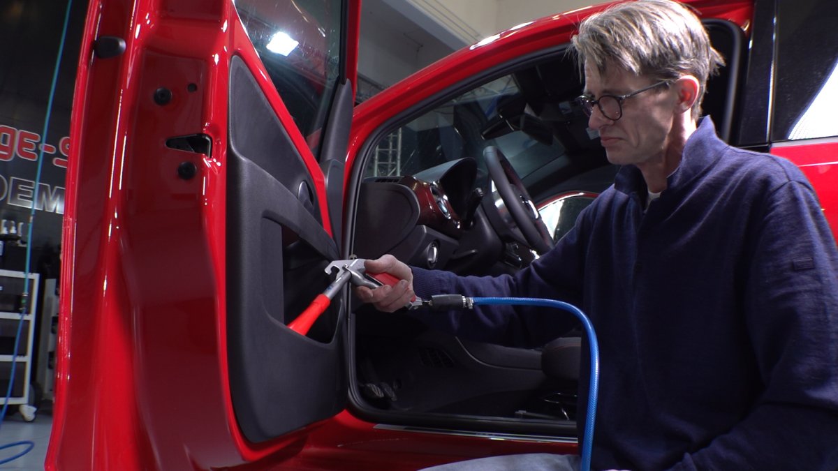 Whenever the conventional liquid container makes it difficult to access tight areas, the Tornador® BASIC Z-014RS has proven to be especially successful: Under the seats, in the engine compartment, on the radiator grill, in the handle shells, under the filler cap, or also with all electrical components, the Tornador® BASIC Z-014RS cleans and dries accurately. The built-in swivel air inlet make the usage and handling even easier.